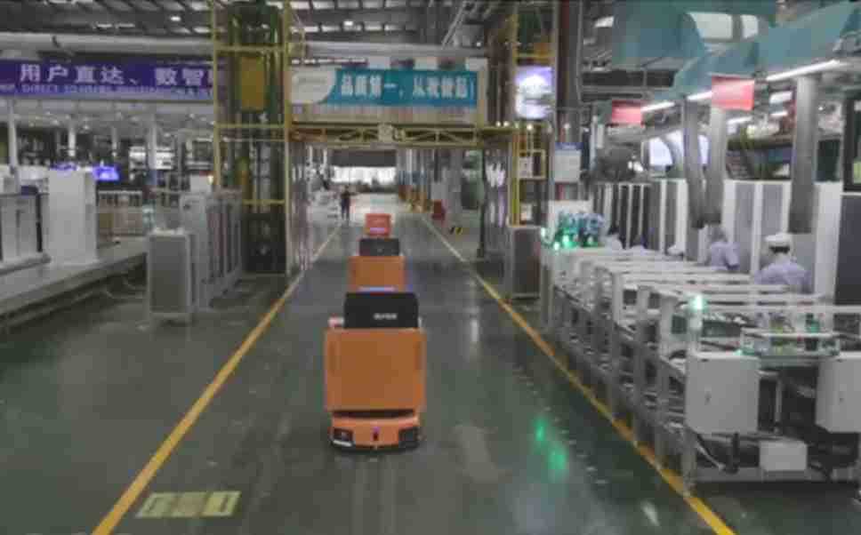为车载冰箱物流配送打造的智能解决方案,,包含产中物流通过潜伏举升AMR搬运至线边,,,产后成品物流智能仓储,,流程包含产中物流智能齐套入库,,,线边安灯叫料AMR智能配送至线边,,,成品入库、、、、出库,,,,通过无人堆高车机器人,,,智能仓储管理替代人工作业管理,,,实现更高存储、、、、更高效率、、更具柔性化的解决方案。。。